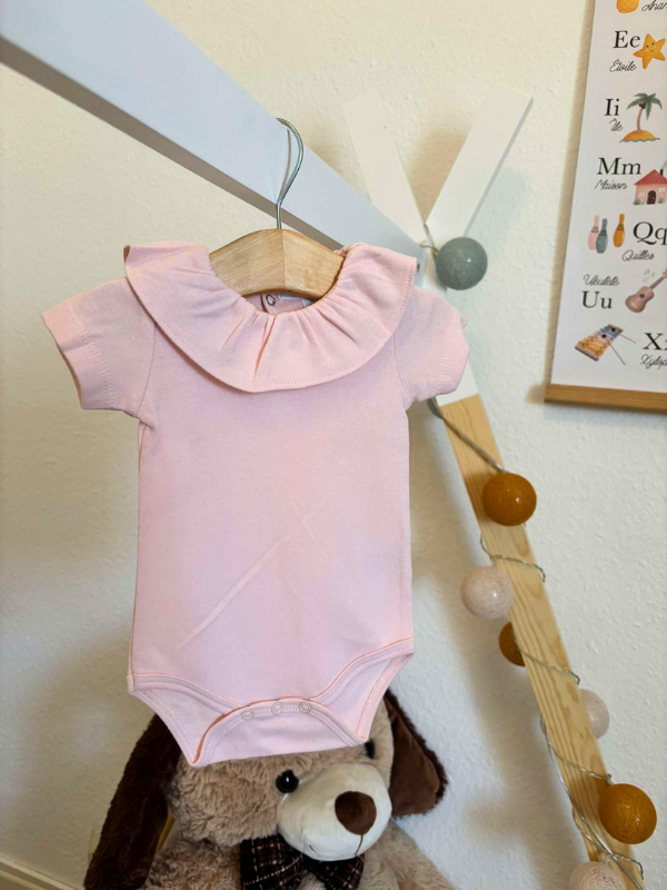 Body manches courtes bébé rose ou bleu à volant 100% coton