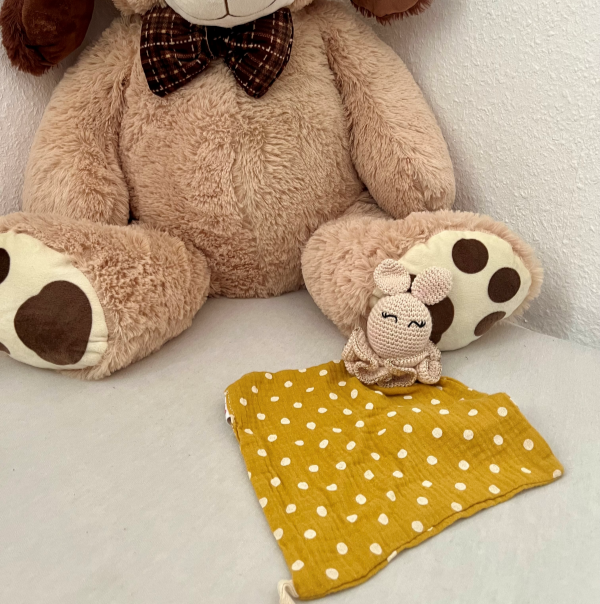 Chaque doudou lange est unique, reflet du savoir-faire artisanal français. La fabrication à la main assure une attention aux détails et une qualité supérieure, faisant de chaque pièce une création exclusive. En choisissant notre doudou lange Made In France, vous soutenez les artisans locaux et participez à la valorisation des métiers d'art traditionnels.