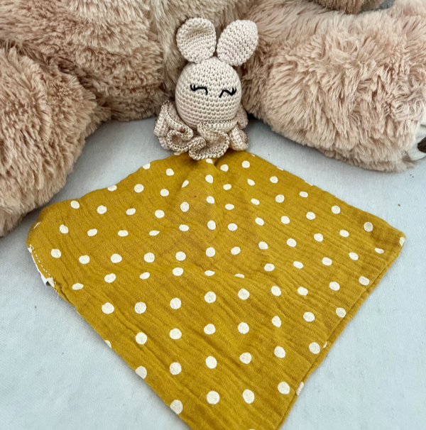 Chaque doudou lange est confectionné à partir de tissus de mousseline de coton de haute qualité, assurant une douceur exceptionnelle et une légèreté incomparable. La mousseline de coton, naturellement respirante et hypoallergénique, est parfaite pour la peau délicate de votre enfant. Exempte de substances nocives, elle garantit une sécurité totale, ce qui permet à votre bébé de câliner son doudou en toute tranquillité.