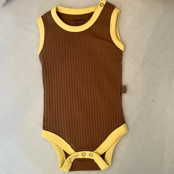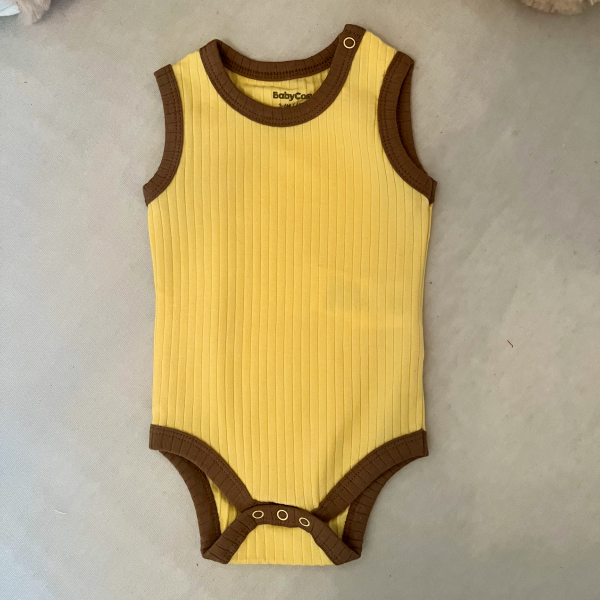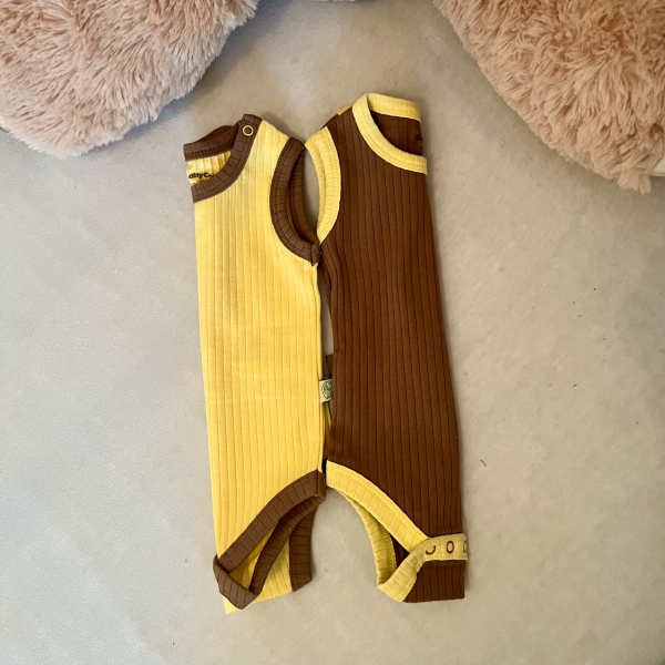 Lot de 2 bodies bébé jaune et marron 100% coton