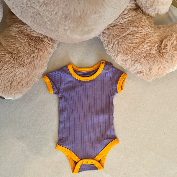 Le premier body est d'une teinte violette élégante, apportant une touche de couleur raffinée à la garde-robe de votre bébé. Ce body se distingue par son design épuré et ses finitions soignées. L'encolure ronde est munie de boutons-pression sur l'épaule, ce qui facilite grandement l'habillage et le déshabillage. De plus, les boutons-pression à l'entrejambe permettent un changement de couche rapide et sans effort, offrant ainsi une praticité maximale pour les parents.