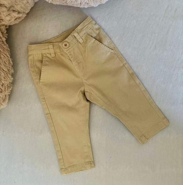 Ce pantalon chino est idéal pour toutes les occasions, qu'il s'agisse d'une sortie en famille, d'une fête ou d'une journée à la maison. Sa couleur beige neutre permet de l'associer facilement avec une multitude de hauts, créant ainsi des tenues variées et élégantes. La coupe ajustée de ce pantalon met en valeur la silhouette de bébé tout en offrant une grande liberté de mouvement, essentielle pour les enfants en pleine croissance et exploration.