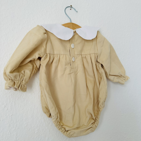 Fabriquée à partir de matières douces et respirantes, comme le coton ou le lin, la robe barboteuse assure un confort optimal tout au long de la journée. Sa coupe ample permet à bébé de bouger librement, que ce soit pour ramper, marcher ou jouer. Les boutons-pression en bois situés au dos facilitent le changement de couche, rendant cette tenue non seulement belle, mais aussi ultra-pratique pour les parents.